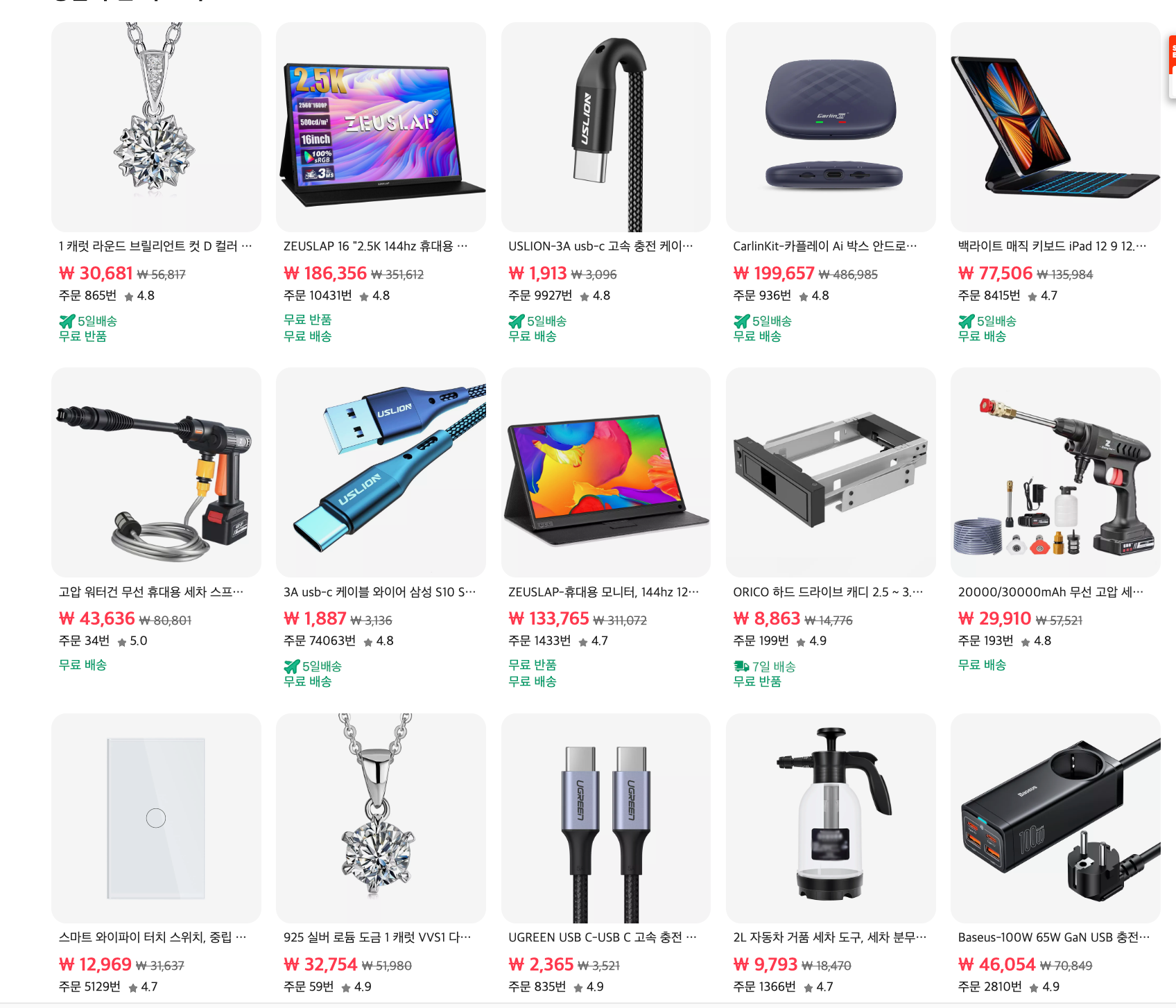 상세페이지에 5일 무료배송이라고 표시된 상품들은 한국에서 구입하시는 상품들과 크게 차이가 나지 않아요,직구라고 해도 바로바로 출발되는 상품들로 구성이 되어 있기 때문에 오래 기다리는 직구 아니라서 더욱 더 만족스럽습니다.