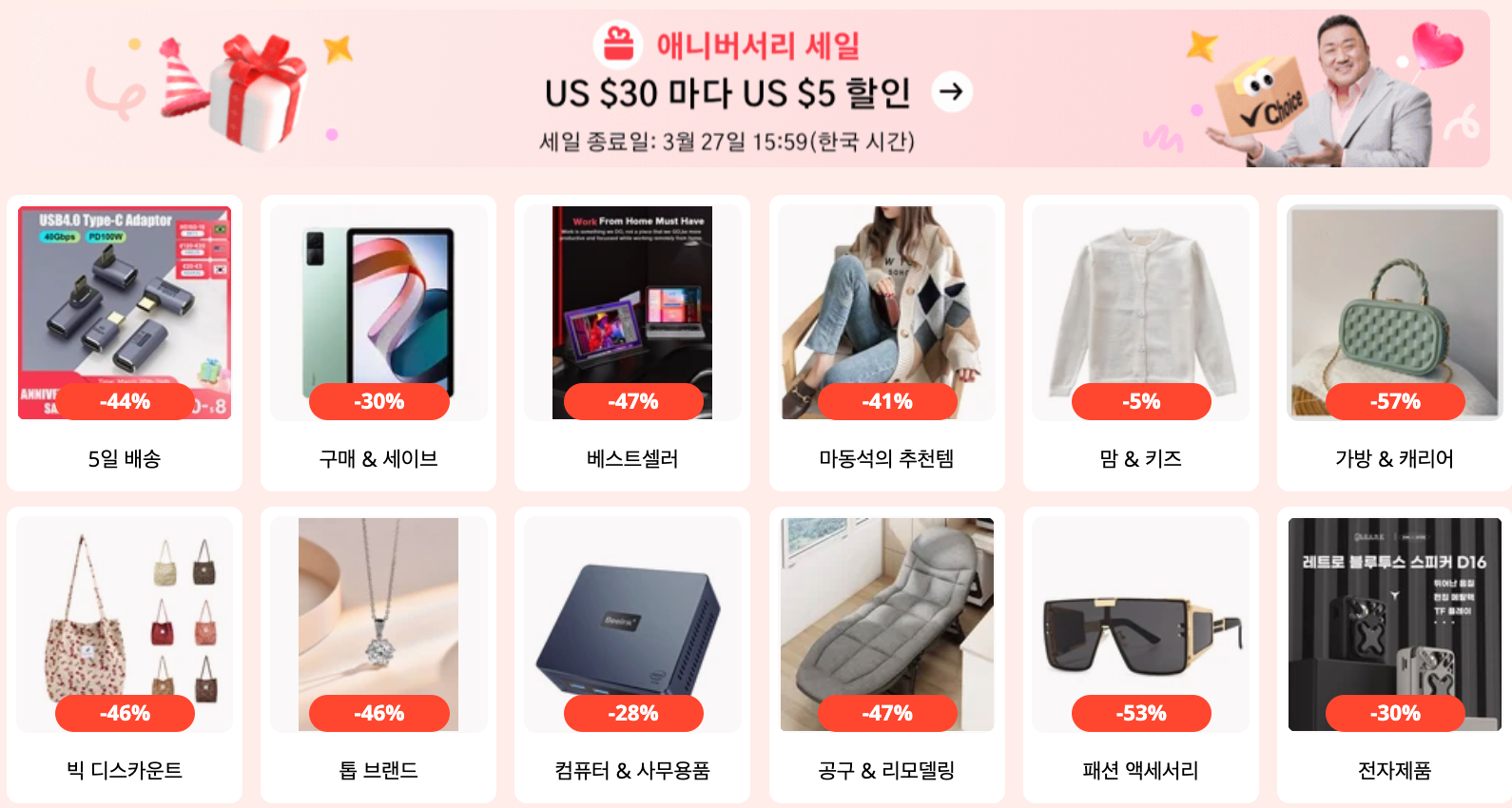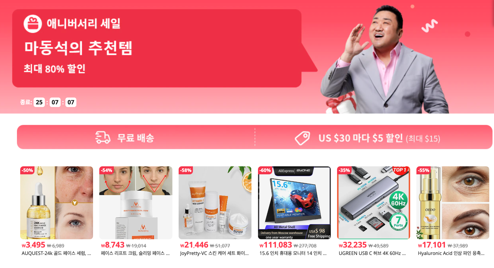 알리 익스프레스에서 마블리 마동석 메인 모델로 해서 엄청난 홍보를 하고 있습니다.