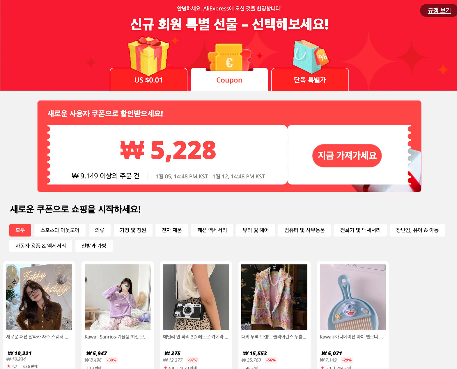 알리 앱 설치 회원가입 후 신규회원 쿠폰을 꼭 이용하셔서 알뜰한 쇼핑 도움이 되길 바랍니다.