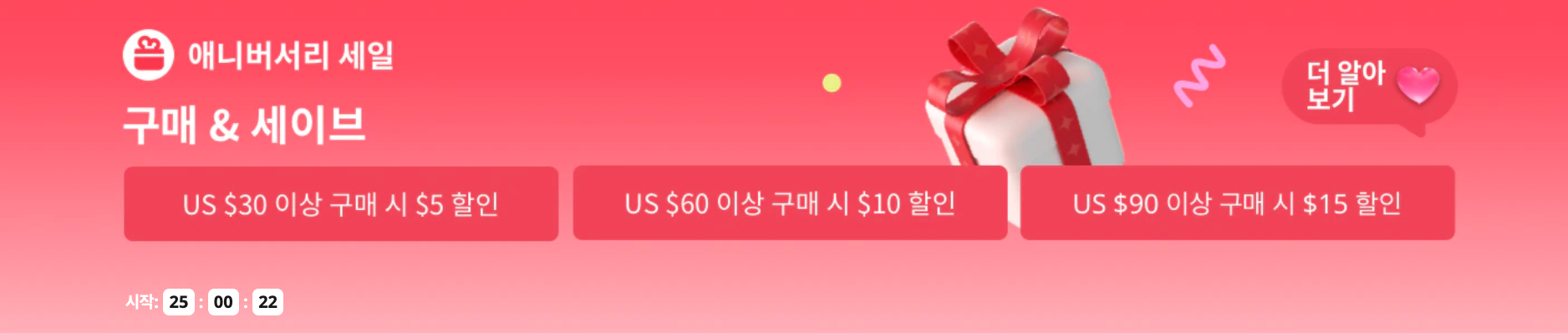 ▶ 13주년 애니버서리 프로모션 코드( 위 사진 타고 들어가서 아래 코드 복사해서 사용하면 편리합니다.)