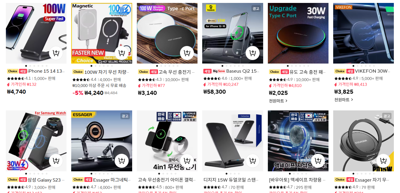 알리익스프레스에서는 자동으로 스마트폰을 감지하여 고정해주고, 고속 무선 충전까지 지원하는 제품을 2~3만 원대로 구매할 수 있습니다.